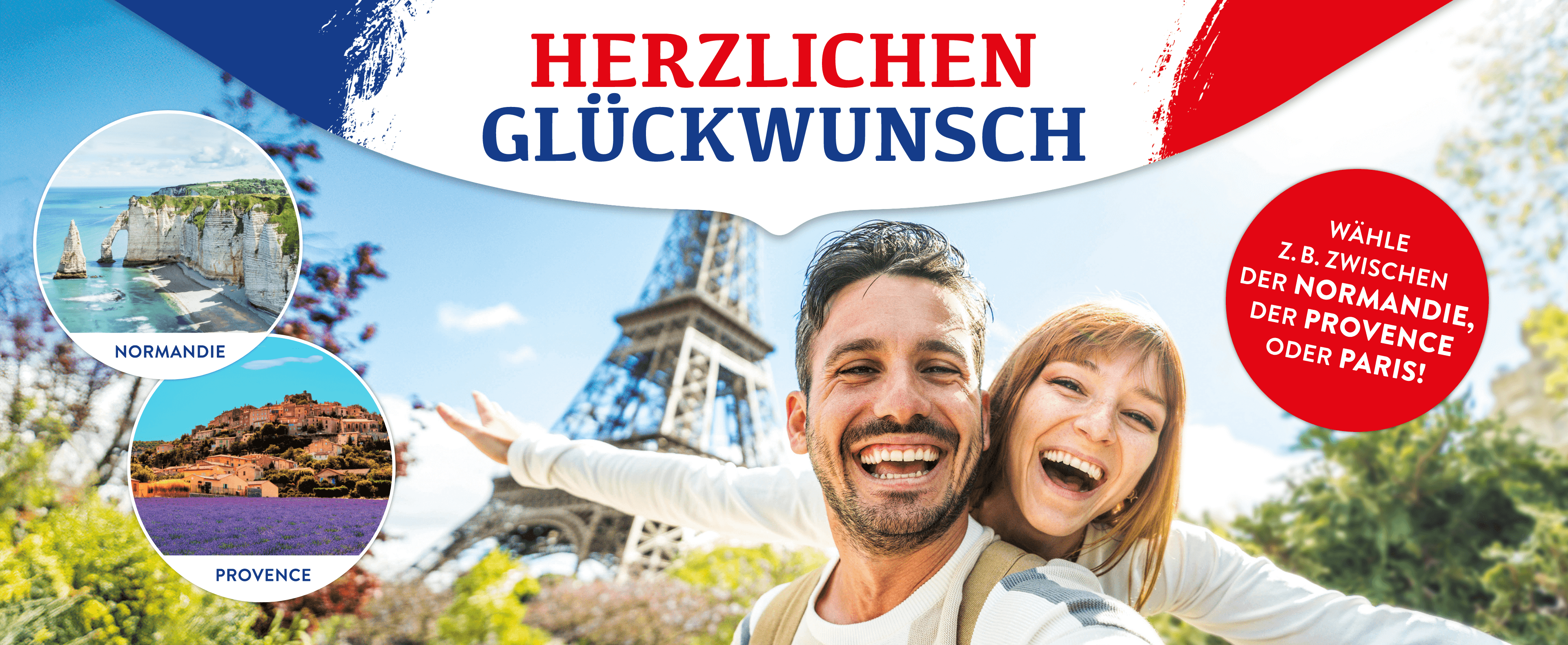 Ob charmante Normandie, sonnige Provence oder pulsierendes Paris – bei dieser Reise entscheidest du, wohin es geht. Ganz nach deinem Geschmack.